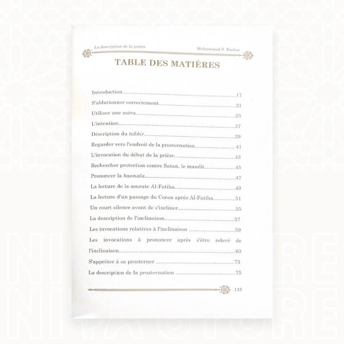 Dans ce livre, Cheikh Raslan détaille la prière étape par étape, en s’appuyant sur les textes authentiques du Coran et de la Sunna, afin d’aider le musulman à :