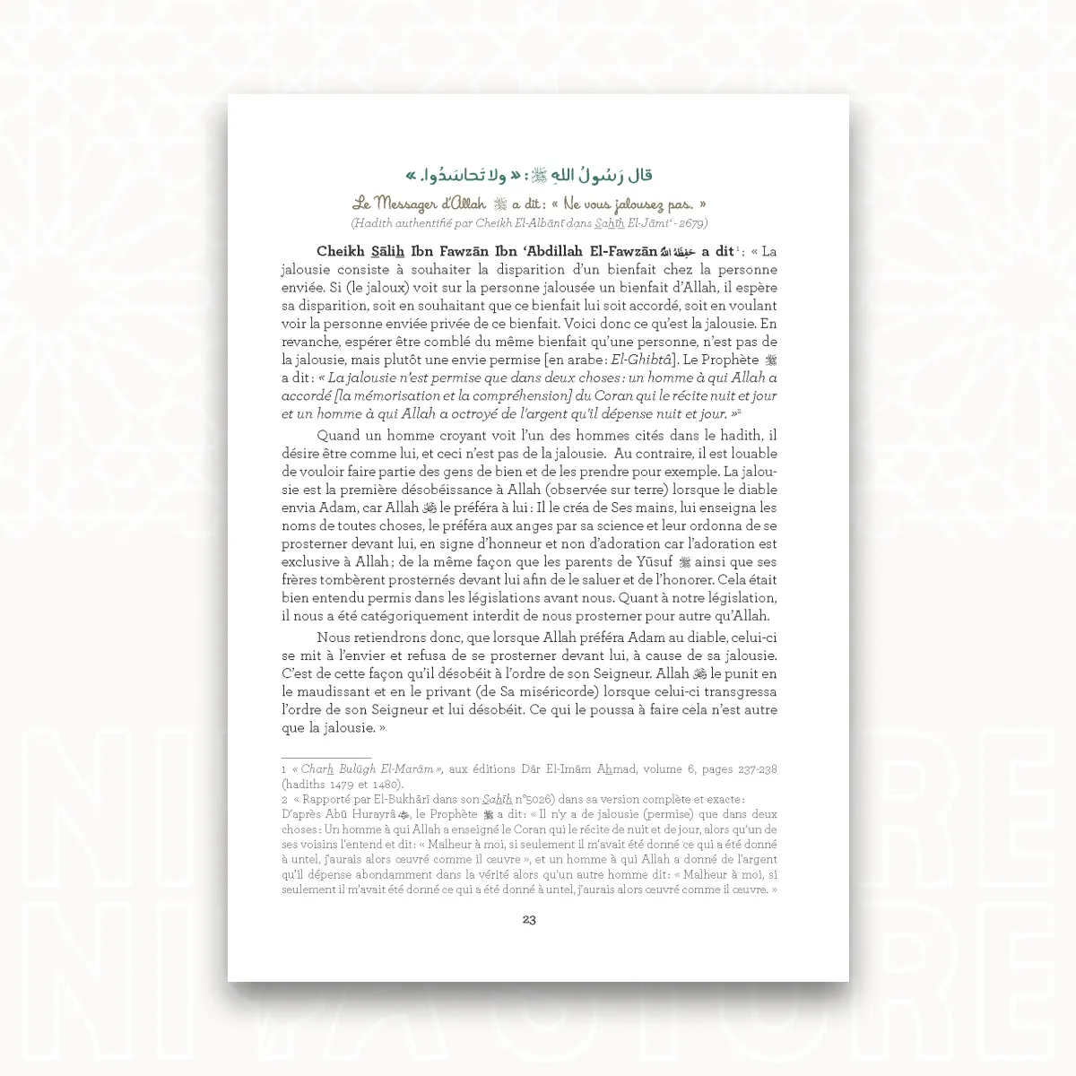 Il s’agit d’un rassemblement de paroles authentiques du Prophète ﷺ, authentifiées par Cheikh al-Albani, suivies d’explications de savants, de manière simplifiée afin d’en faciliter la compréhension à l’enfant.